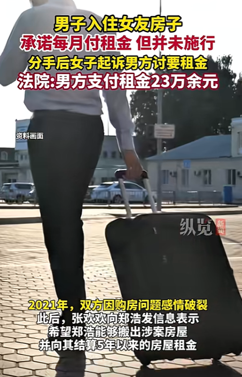 (信源:NXTV都市阳光2024年12月30日关于《恋爱时男子入住女友房中,分手后女子起诉男子讨要5年房租 法院:应支付23万余元》的报道)