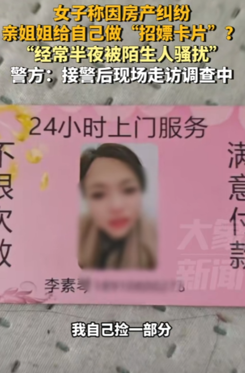 “太损了!”女子的亲姐姐为了争夺房产,竟然用女子的个人信息制作成了“招嫖名片”,并且四处张贴,导致女子深夜频频被陌生人电话骚扰,生活陷入了前所未有的混乱。