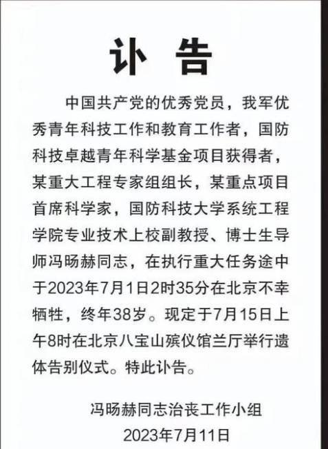 张代兵博士和冯旸赫副教授的离世是科技界的重大损失,他们的精神将永远激励我们前行。让我们铭记他们的贡献,共同为国家的繁荣富强而努力。