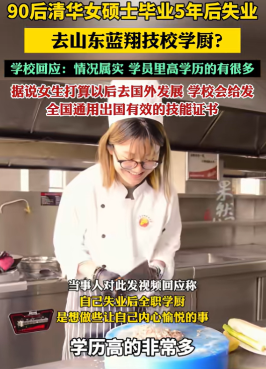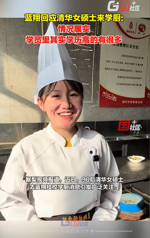 (信息来源:齐鲁晚报·果然视频2025年1月4日关于《蓝翔回应清华女硕士来学厨:情况属实,该女生报的厨师短期班,学成了自己能做300多个菜,自己上灶场能炒100多个菜》的报道)