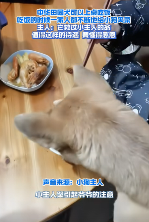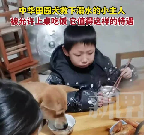 2025年1月2日(采访时间),广西一名8岁男孩小强(化名)在暑假期间与小伙伴到河边游泳时,不慎落入深水区,危急时刻,家中田园犬小黄英勇跳入水中,死咬着小强的衣服不放,最终助力其获救。为感谢小黄,小强家人决定让它上桌吃饭,共享家庭餐桌。