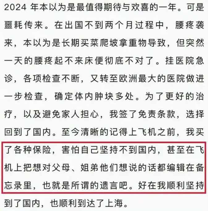 在上海复旦大学附属肿瘤医院,杜梅被确诊为十二指肠恶性肿瘤。因治疗费用高、住院排不上队等原因,她决定回老家徐州治疗。治疗期间,她历经9次化疗,得到了许多亲人、老师、同学的关爱。然而,本以为2025年6月可以拿到博士学位的她,却在1月3日病情恶化,不幸离世。