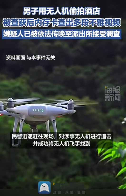 (信息来源:云上深夜快递2025年1月7日关于《酒店客人深夜发现窗外有无人机长时间停留,警方:嫌疑人操控无人机偷窥他人隐私》的报道)