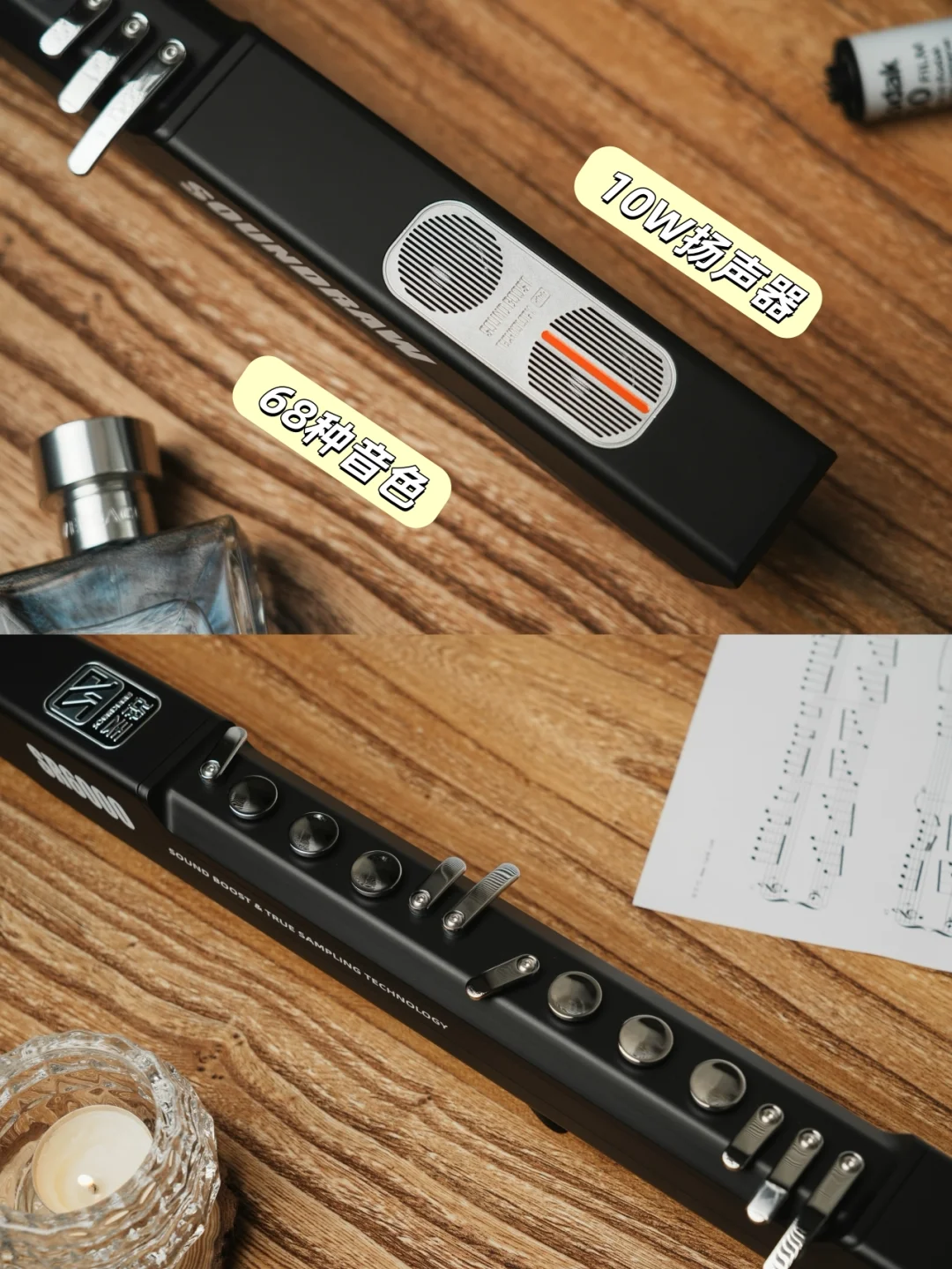 再讲讲它的小细节,可拆卸安装,收纳携带方便,模块化设计拆卸后才 69cm 长,户外、旅行随时能带着。9 种音色,木吉他、钢琴音随心切换,弹唱一体,自弹自唱秒变乐队。还有 3.5mm 耳机孔、超长续航等,每一点都超实用。总之,对比下来,aeroband空气乐队吉他完美符合我的需求,入股不亏呀!