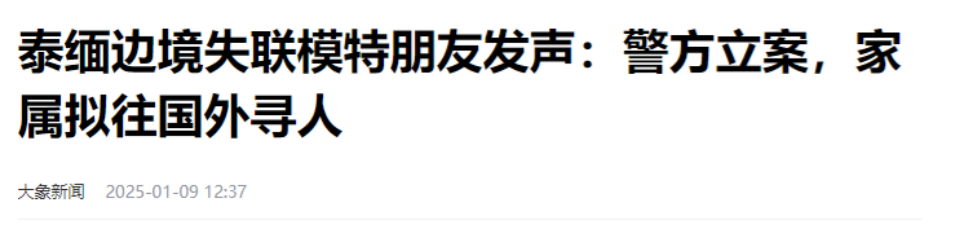 (信息来源:大象新闻 2025年1月9日 《泰缅边境失联模特朋友发声:警方立案,家属拟往国外寻人》)