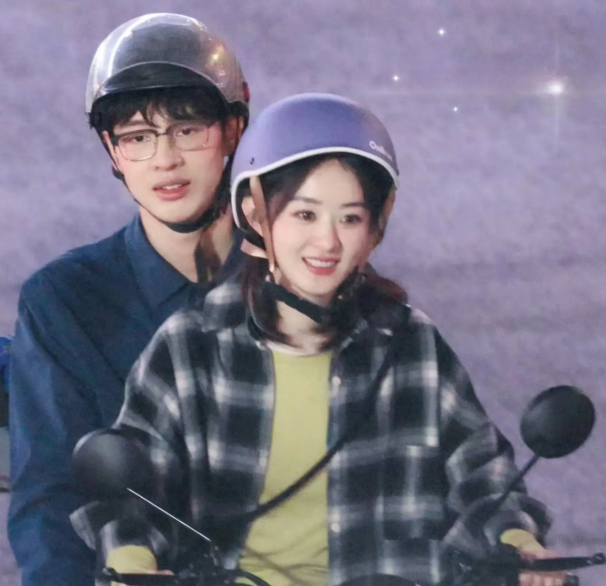 重庆偶遇赵丽颖拍戏,她本人脸也太小了,好年轻呀,像个大学生瘦瘦小小的,戴着紫色头盔特别可爱,表情又甜又乖太有灵气。
