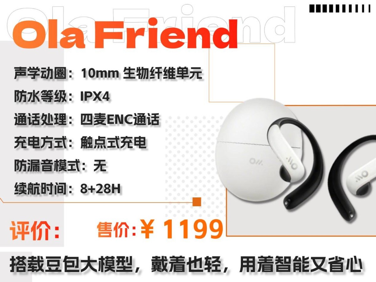 推荐理由:耳机搭载的豆包大模型日常用着省事,效率特别高,单耳6.6g佩戴超轻无感。