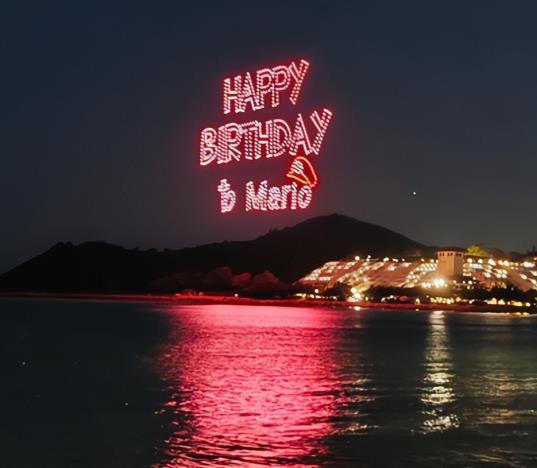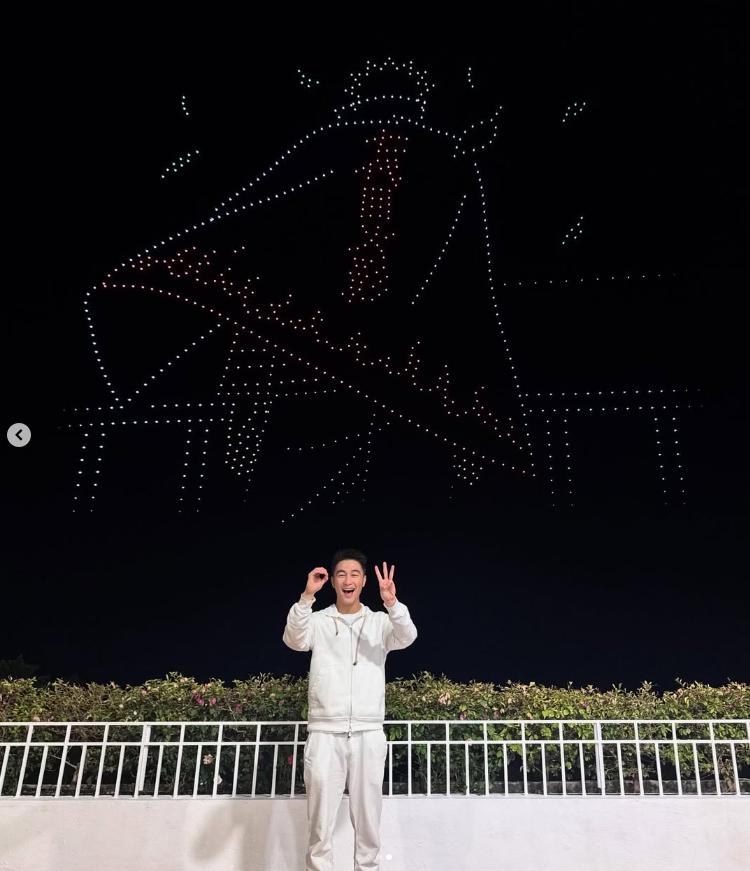 奚梦瑶用无人机为30岁何猷君庆生。 是完美人生,才30岁男人。 老婆的个