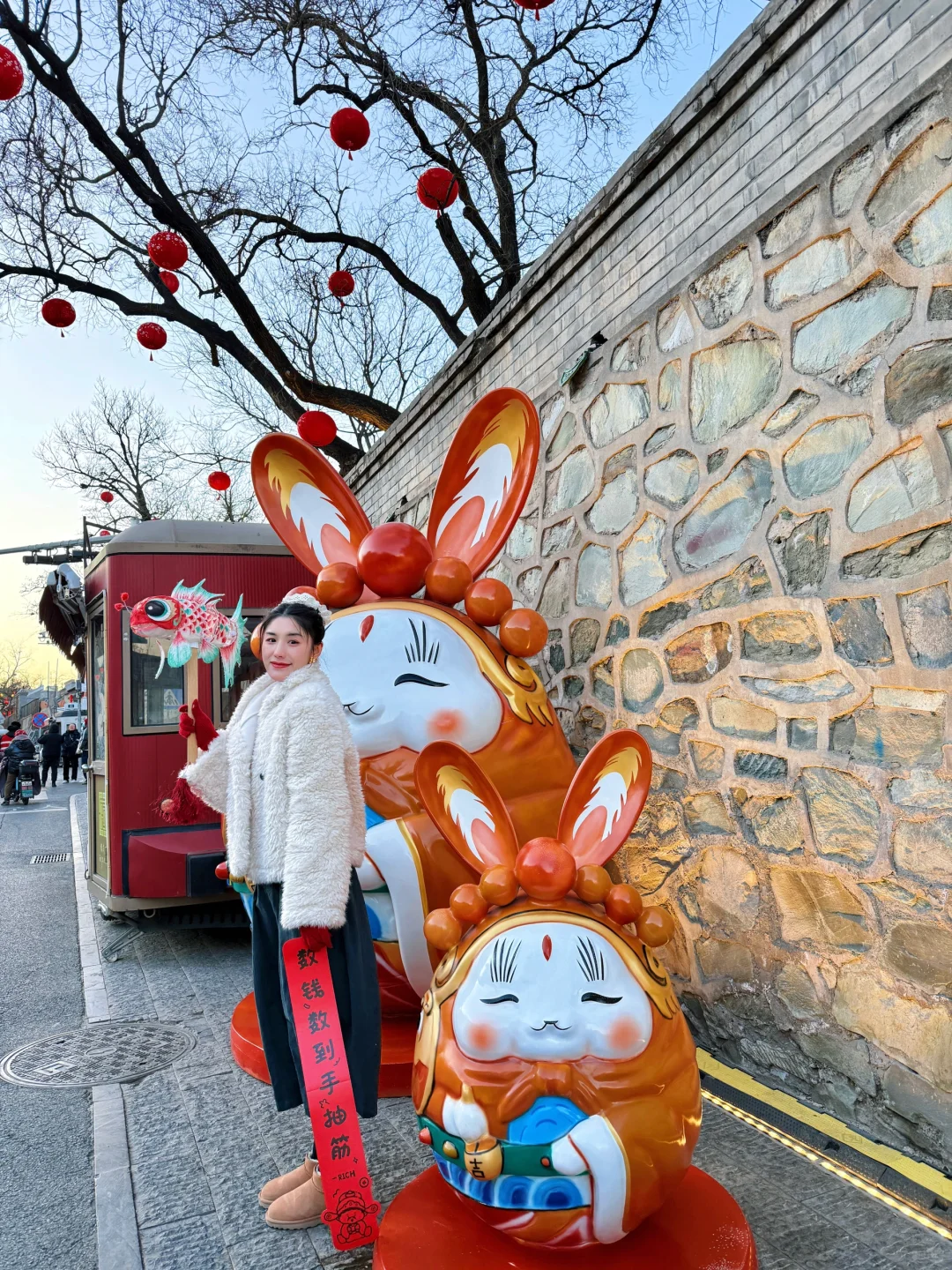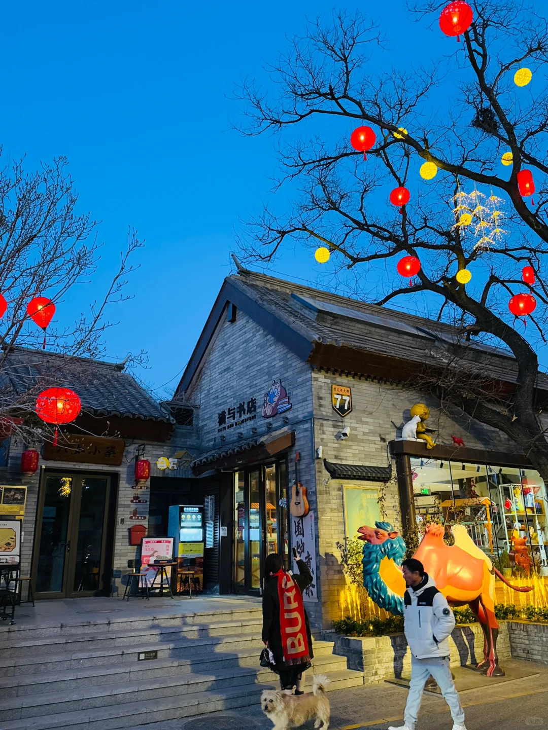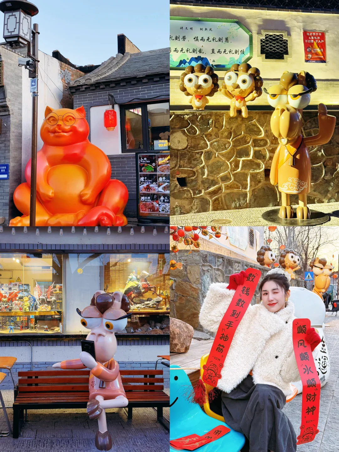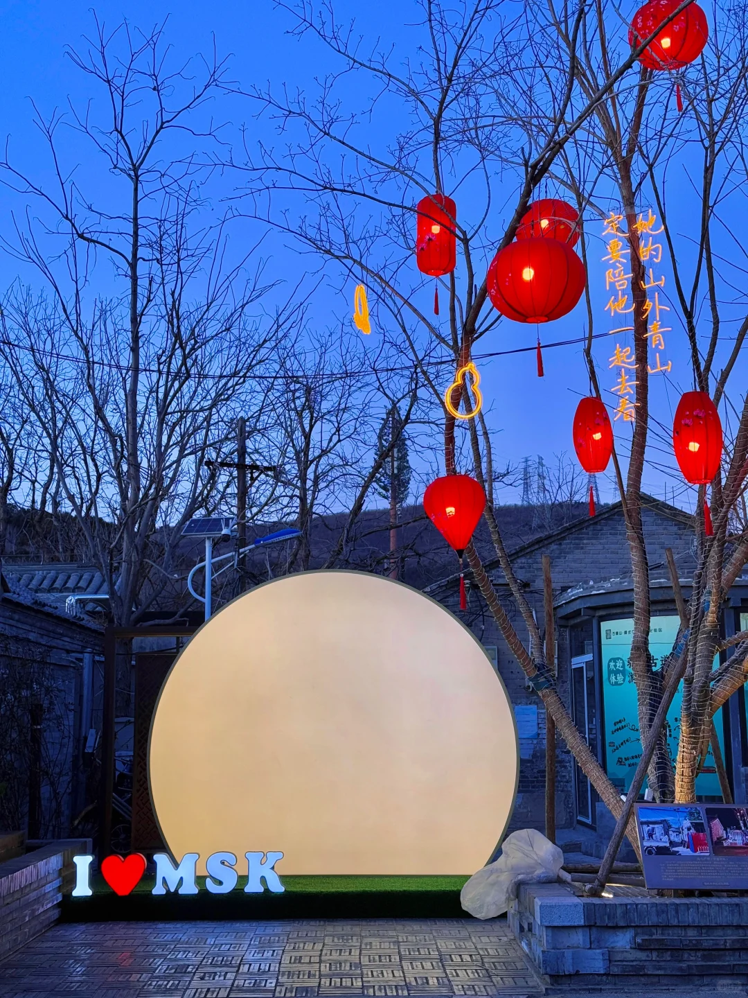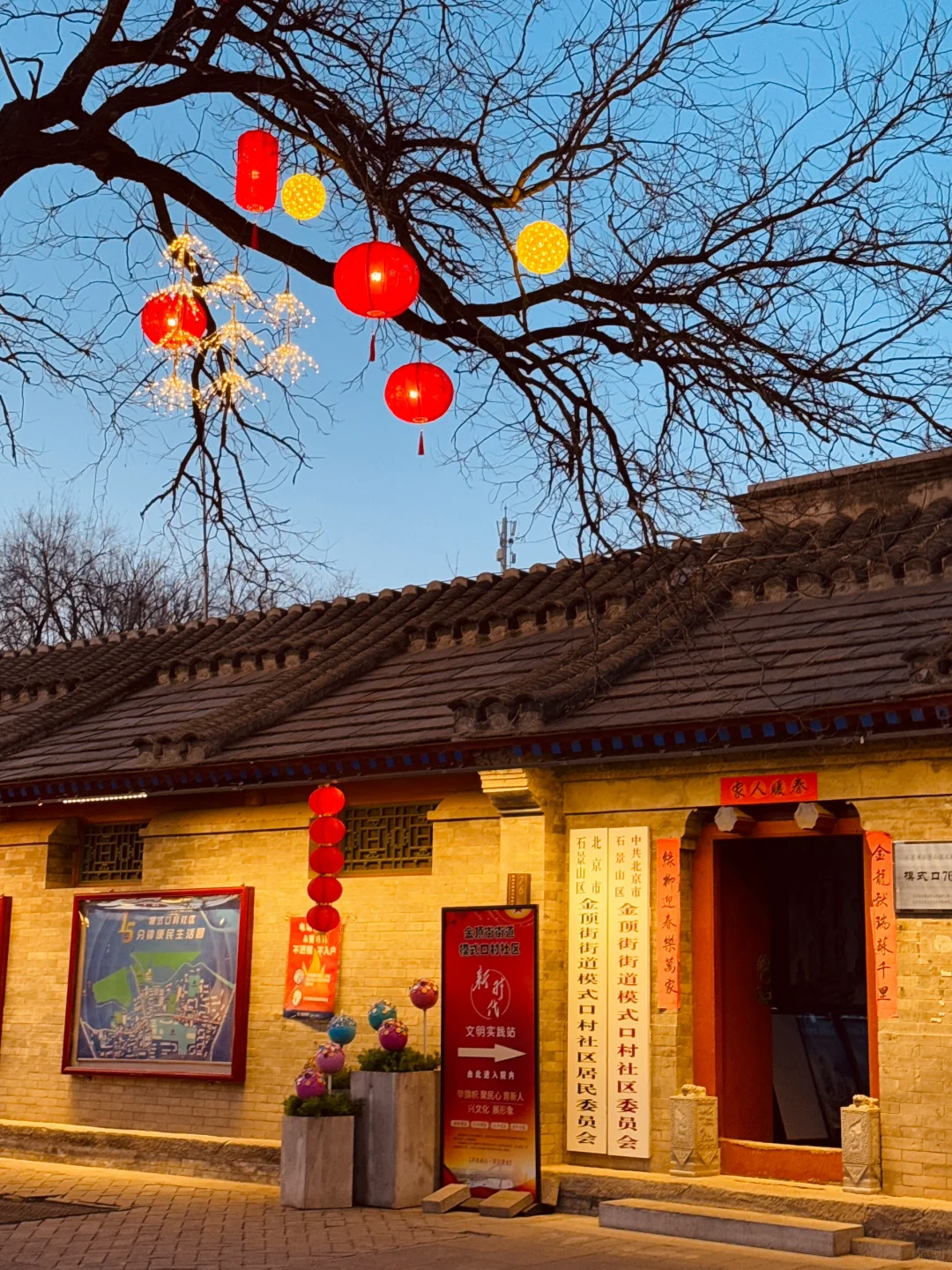 新年倒计时‼️ 来京老舍笔下的驼铃古道感受年味了! 去年就很火的模式口,今年终于来了 跨越半个北京城,虽远但值得啊👉 还吃到了超好吃的米线🍜好吃到汤都被喝点😂 顺便整理了,拍照路线🗺️ 有需要码住! 🚶游玩路线 🚇地铁A口出—-从西向东游览👉 👉大概距离: 1.5公里 ⏰游览时长: 4小时 💡亮灯:5:00左右就开始亮灯蓝调时间很短 🗺️路线: 石景山区时刻博物馆➱ 古道斯存➱ 猫与书店➱行坐club➱石门书院➱京西老学堂 ➱过街楼遗址➱承恩寺➱京西书局 👉美食 🥠 |法海寺炸糕:2.5r 🍜|云南过桥米线 16r 🥙|炸灌肠炸蘑菇 15/9r🍄‍🟫 🫔 |小韩家山东杂粮煎饼:8r ✅小Tips: ▪️街道很长还是建议保暖和穿舒适的鞋 ▪️要留意晚上墙上的投影的图案灯,很漂亮 ▪️停车场就在整条街中间位置,出来也方便逛街 ▪️整条街道都是小吃和文创店,值得慢慢逛 🏮|模式口大街 🚇地铁乘坐 11 号线模式口A口 🚗自驾:模式口大街 3 号停车场出来直接进街区
