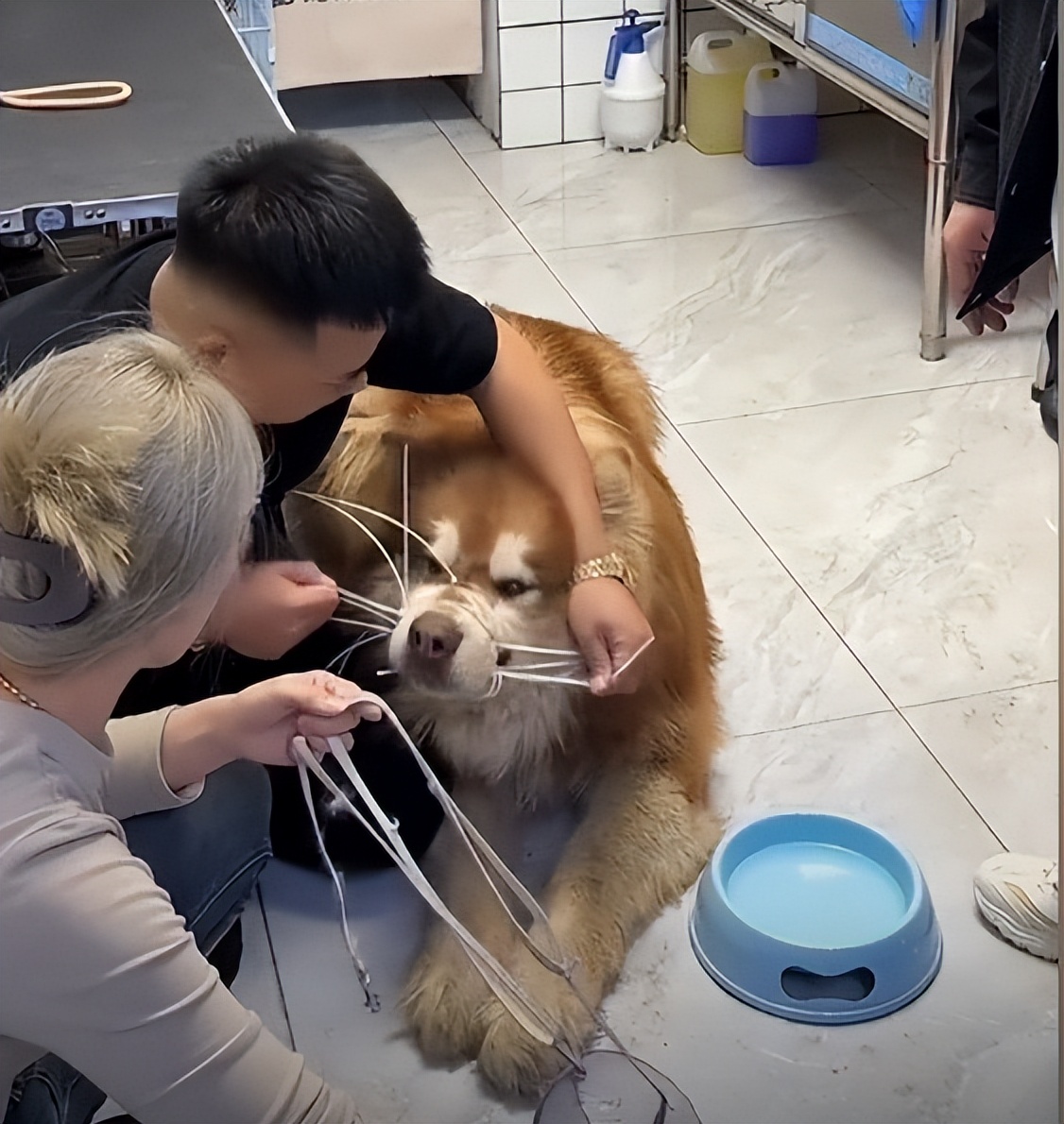 潘宏给狗洗澡致死,狗主人连夜接回家。 其实艾特的离开也是多重因素。 嘴上绑的太紧,冬天不应该洗澡。像这种大型犬冬天洗澡,不是那么容易的。 再一个打骂狗子紧张!网络流量真是一把双刃剑啊! 活着的时候要安乐死我,死了却说爱我。