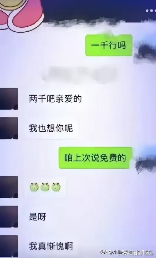 翟欣欣聊天截图里她要求最少的那个对象,肯定是年轻帅气的小伙,是翟欣欣生理上喜欢的,所以,只要对方给她一千、两千,以示诚意,她就愿意,顺带当成补偿自己嫁丑男的忍耐。