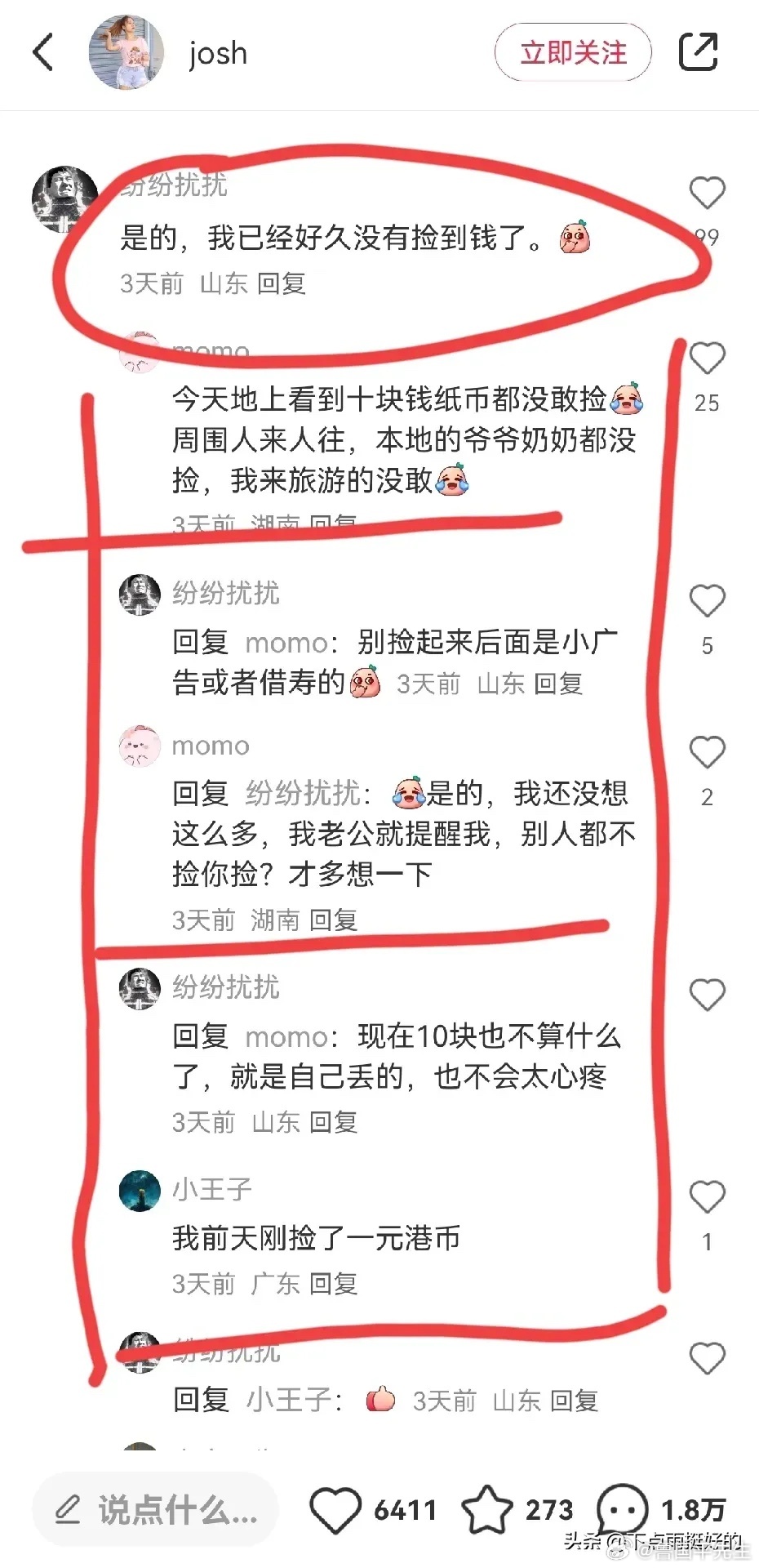网友纷纷扰扰则开玩笑说:“是的,我已经好久没有捡到钱了。”网友跟帖讨论捡钱的回忆和趣事。还有网友跟老外玩起了谐音梗:“的确是这样。所以有成语——机不可失。”