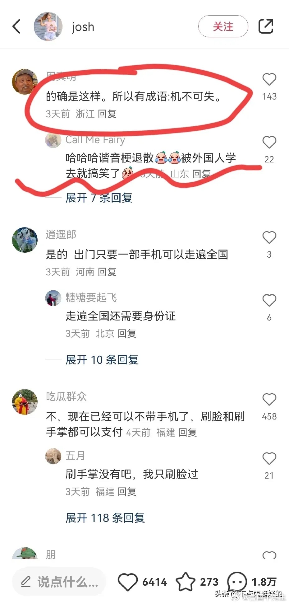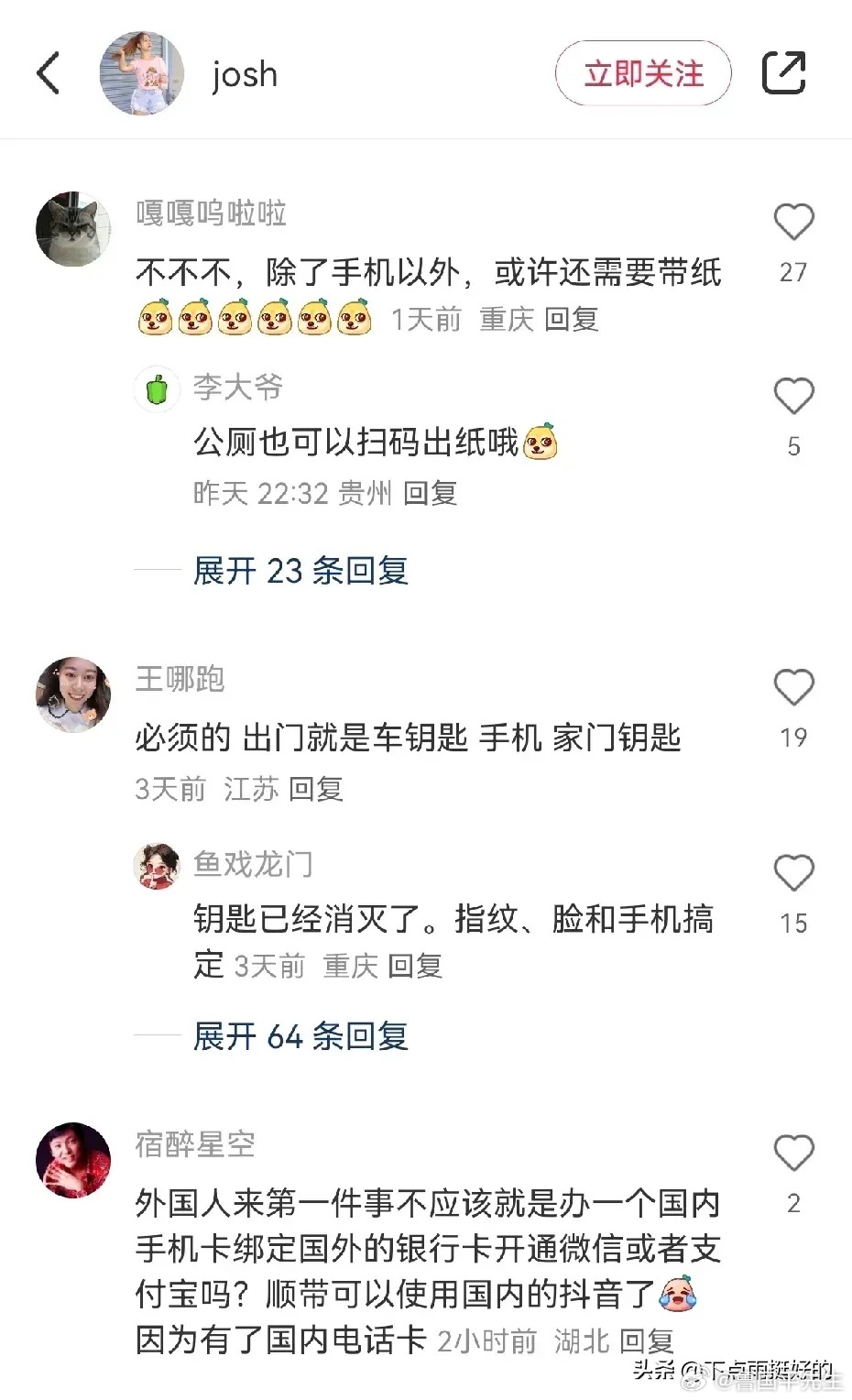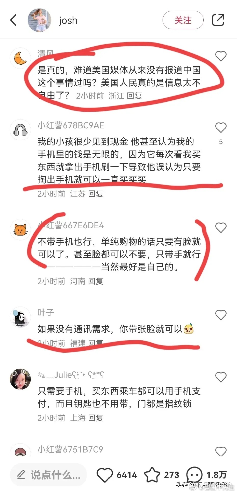 美国女网友josh在小红书发问:“听我中国朋友说,在中国出门只需带上手机就行了,不需要带现金。真的这么方便吗,请告诉我真相?”迅速引来大批热心网友解答,1.8万多条评论从各方面介绍情况。