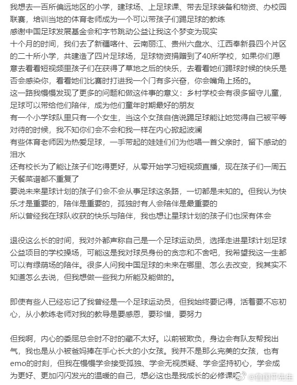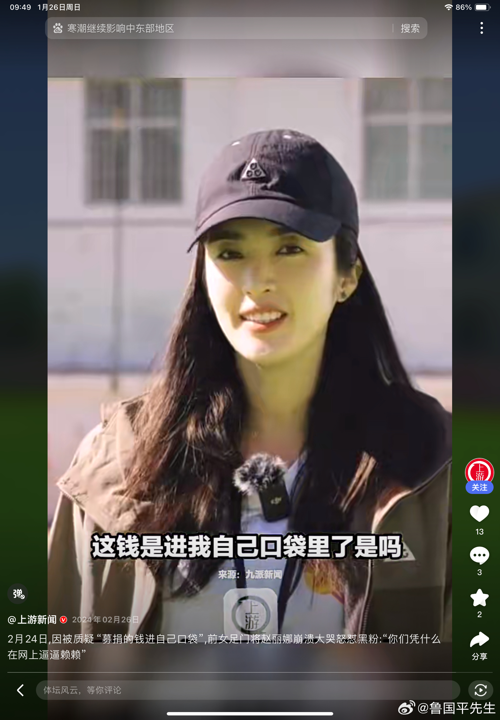 最近前足球运动员赵丽娜称做公益太难。原因竟然是普通民众不热衷捐款,发了40条公益视频捐款只有几十块钱。这让她感到心寒。