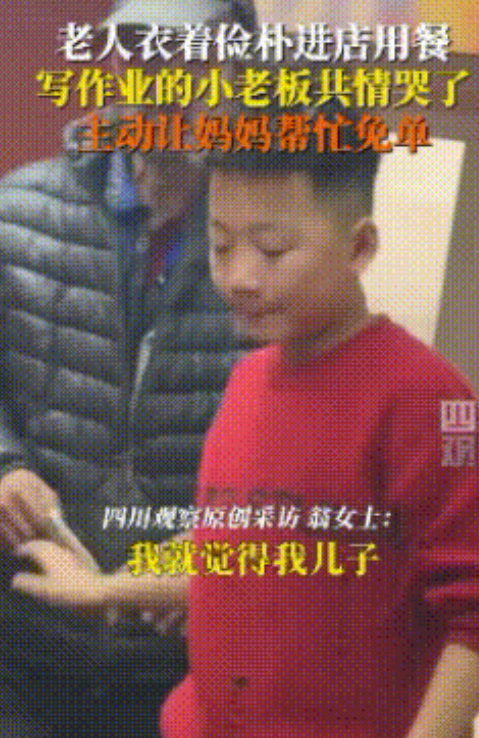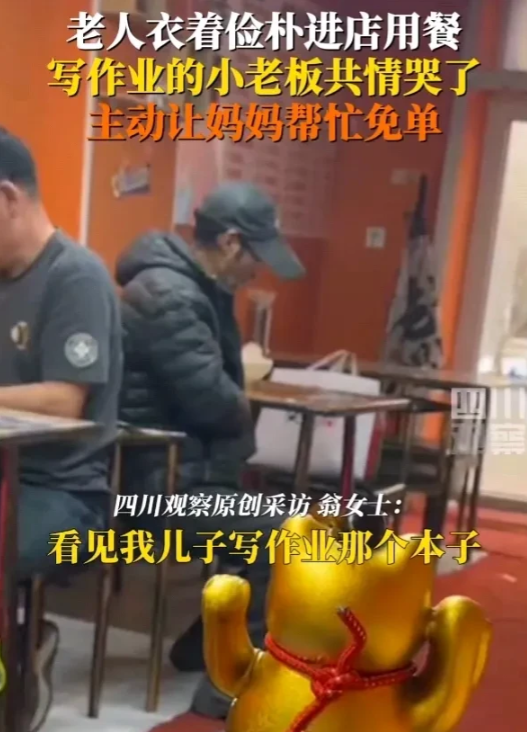 哈尔滨,一位老人衣着俭朴,独自进店用餐,写作业的小老板看到后,共情哭了,主动让妈妈帮忙免单!网友:孩子看到你,我眼泪也掉下来了!