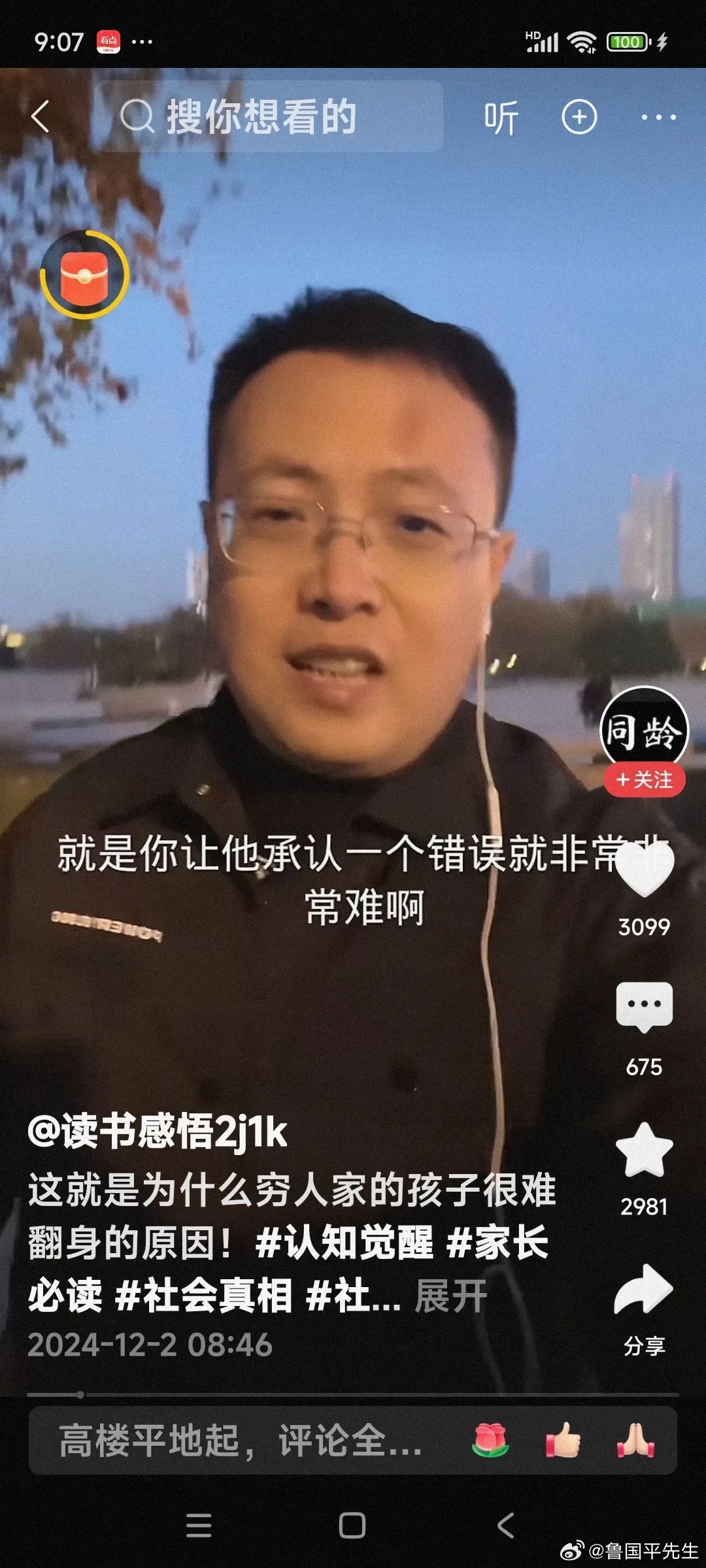 为什么穷人的孩子很难翻身?因为穷人家培养出来的孩子,大多数都是死倔死倔的。让他们承认一个错误非常难,而反观我接触的富人家庭的孩子。他们做错事了,或者是妨碍到别人的时候,他们遇到问题都会主动去解决,他们的试错率高。网友说:不同意他的这个观点,成功了叫执着,没有成功叫死倔死倔的!根本的原因就是家庭处在底层,见识少,认知低,对很多事情,只有非黑即白。看问题都是从自我出发,以自我感受为主。穷人追求真理,富人追求利益。有的人说:人家的孩子因为教育资源丰富,家庭氛围更开放。往往对自我认认知,有更大的信心犯错后,可以用更冷静的方式面对批评,并从中学习。大家说是这样的吗?