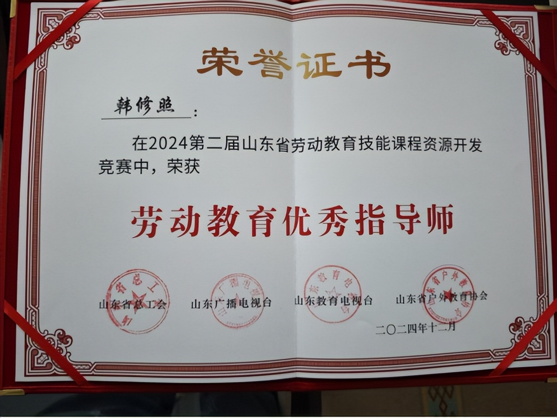 在科技创新方面,韩修照同样表现卓越。他曾带领团队研发的体育科技产品在第二届全国体育科技创新大赛中荣获“优秀产品”称号,体现了其在跨学科领域的探索精神。同时,作为劳动教育优秀指导师,他不仅关注课程开发,更注重师资培养,确保劳动教育真正落地生根,惠及更多学生。