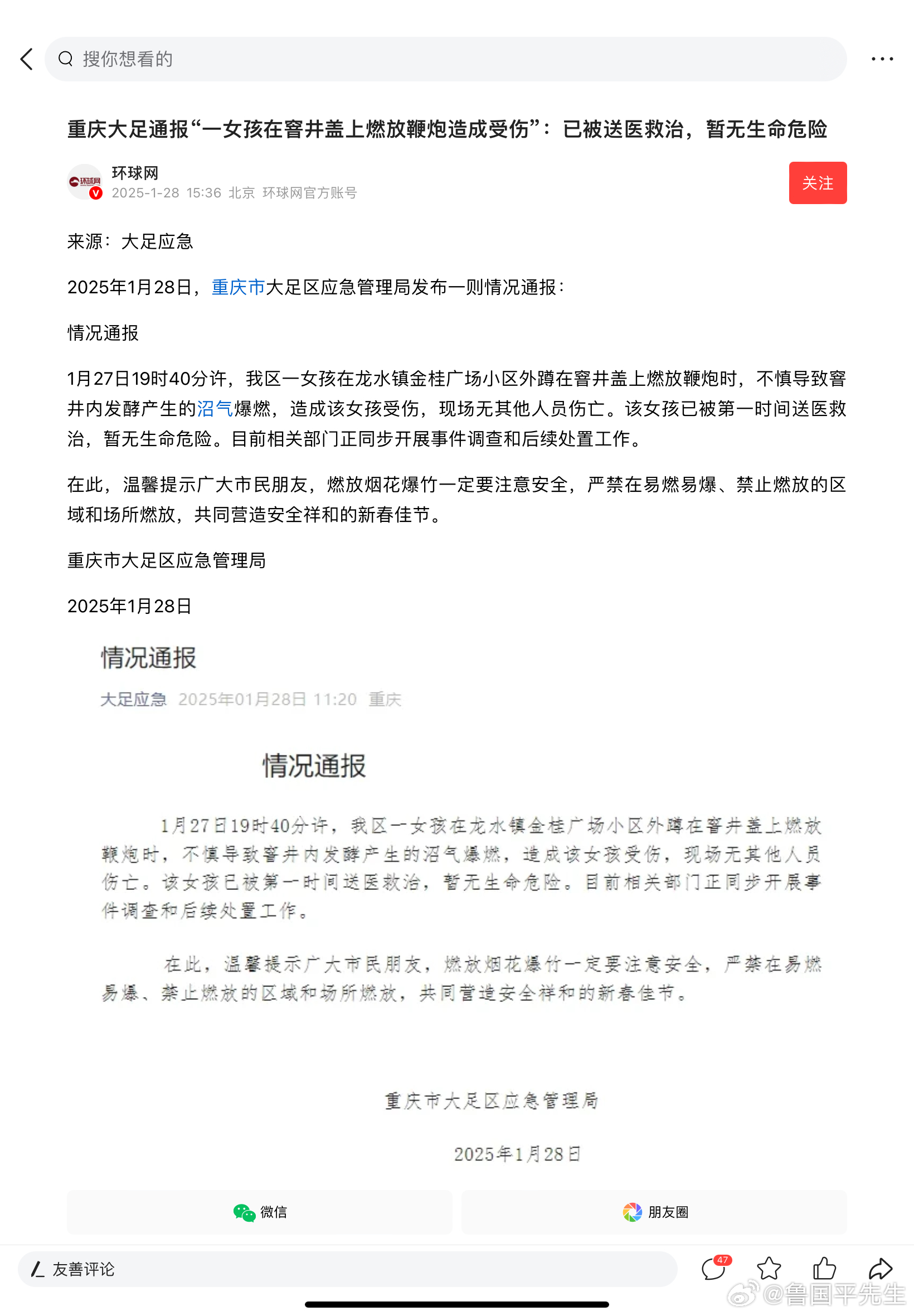 重庆女孩下水道扔鞭炮被炸飞后续!
