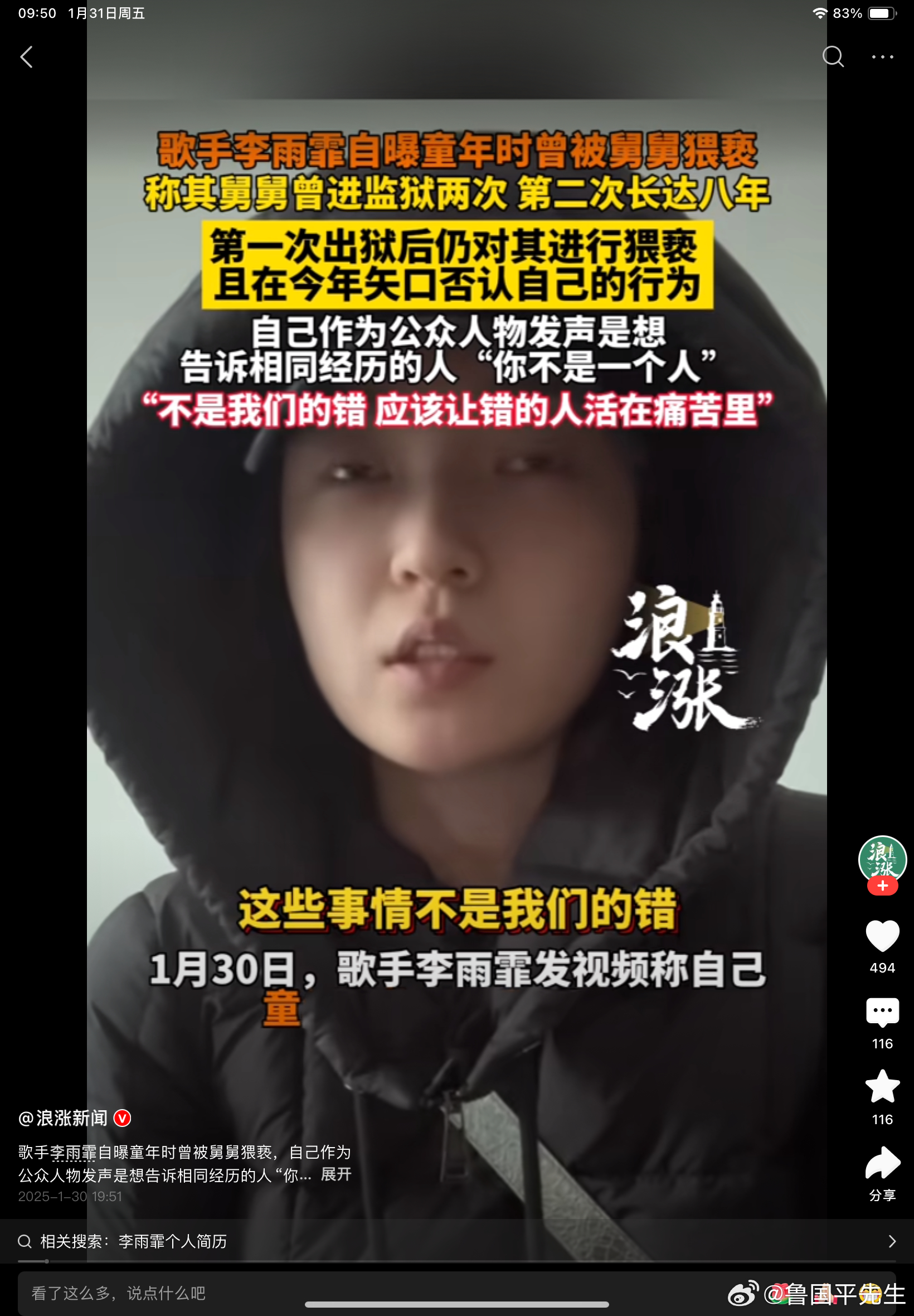 儿童遭到猥亵,80%都是熟人干的,甚至是亲人。原来这句话都是真的。23岁歌手李雨霏在昨天大年初二发视频,爆了一件非常令人心酸和压抑的往事。