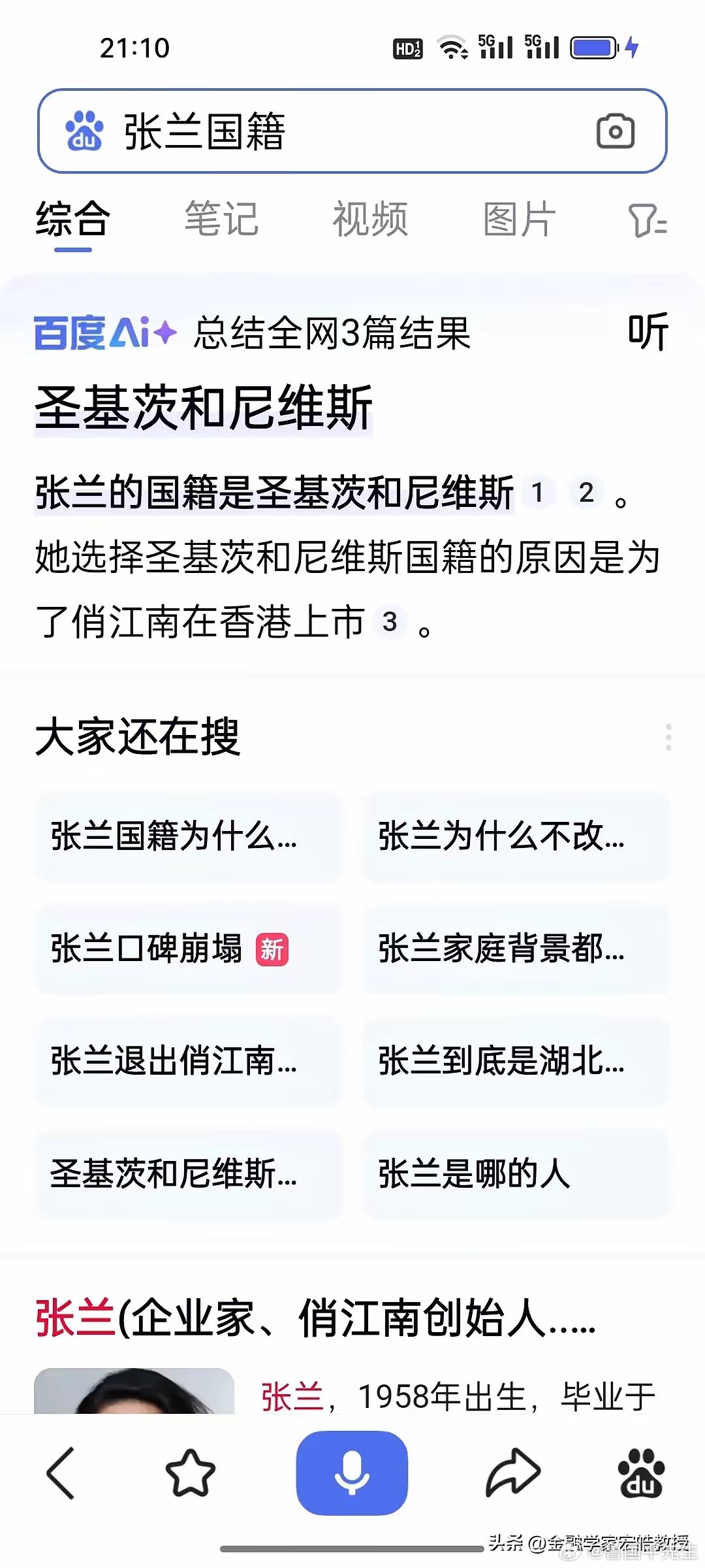 刚刚看到燕梳楼一篇文章中谈到张兰不是中国人,特地百度了一下,原来是圣基茨和尼维斯。 可能很多人不知道,台当局所谓的“邦交国”目前还有12个,其中就包括这个读起来很别扭的圣基茨和尼维斯。 这是位于加勒比地区的一个岛国,是英联邦成员国之一。这个普通人从来没听过的国家,人均收入已经达到发达国家最低水平,旅游业是经济支柱,海滩很有名,也有农业和制造业。还是加勒比地区最富裕的国家之一。 圣基茨和尼维斯于1983年10月与台湾当局建立所谓的“外交关系”。这个国家至今都没有跟中国建交过。 张兰的国籍为什么会是圣基茨和尼维斯?她在公开场合说过,十几年前选择圣基茨和尼维斯国籍的原因是为了俏江南在香港上市。圣基茨和尼维斯护照可以免签多国,包括欧盟等发达国家,方便张兰进行全球的商业活动。也不知道后来张兰的俏江南上市未果后,她有没把国籍换回来。