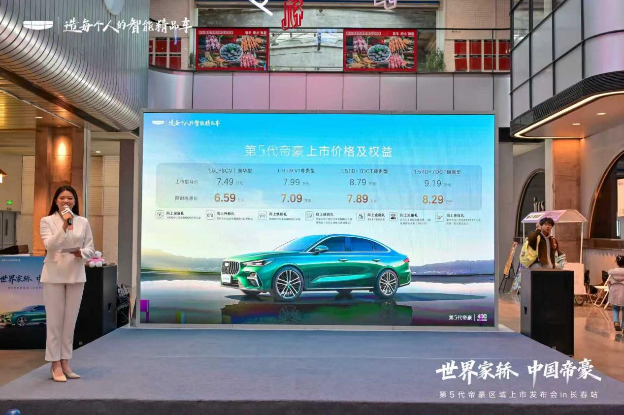 价格与权益方面,第五代帝豪官方指导价7.49-9.19万元,限时感恩价低至6.59-8.29万元,叠加1000元订金抵10000元购车金、至高7000元置换补贴等7重购车权益,延续国民家轿亲民性价比基因,让长春消费者以更低成本享受越级产品体验。