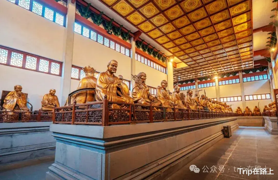 如果你细心观察,还会在药师殿发现另一番天地。这里的十二药叉大将雕塑是明代的,每尊造像都栩栩如生。而五百罗汉堂,是目前国内规模最大的罗汉堂,其中的铜殿,主体高12.62米,获吉尼斯世界纪录认证为“世界最高铜殿”。如果你有兴趣,还会在这里找到属于你的“守护罗汉”,这是根据每个来访者的生辰推算的,是不是很有趣?