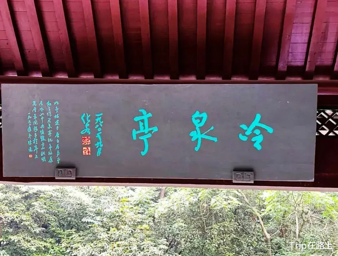 寺前的冷泉溪是西湖水的一处源头,潺潺水声与悠扬的钟声交织在一起,瞬间明白了唐代诗人王维那句“泉声咽危石,日色冷青松”的意境。溪边有冷泉亭,曾经的匾额上“冷泉”二字为白居易所题,“亭”字是苏轼书写,二者珠联璧合,让此亭更添几分雅韵。可惜后来匾额遗失。白居易在他的《冷泉亭记》中夸这里的山水是东南第一。也真是,夏天这里的温度似乎总比城区低几度,成为了人们的纳凉胜地。