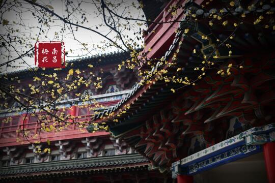 免费赏梅好去处,一定要来滕王阁北园[搜索高亮]看看,太美了!! 🌸导航:古乐坊滕王台,就是游轮售票处后面,有一个戏台,长廊尽头有三棵梅花,配着古建筑,非常出片!