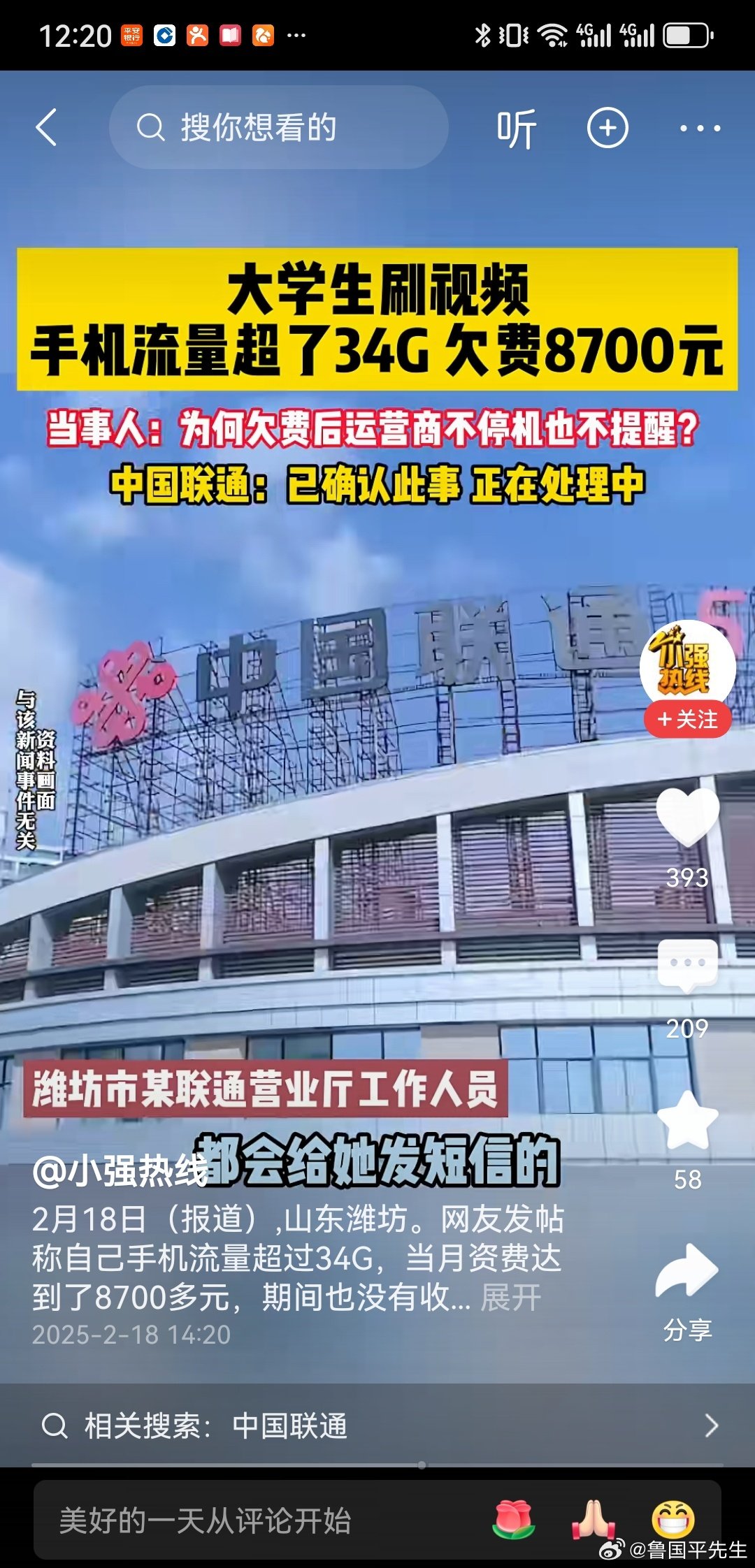也不知道是真没发,还是她自己没看到这信息,所以突然这就出现了这天价的流量费。经过这次事件,也让我们意识到,在流量消费方面,消费者和运营商都有各自的责任。