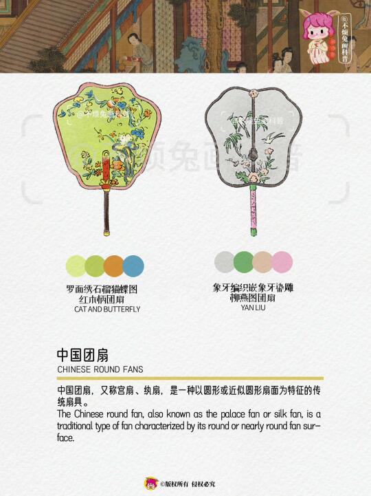 🪭中国团扇,又称宫扇、纨扇,是一种以圆形或近似圆形扇面为特征的传统扇具。