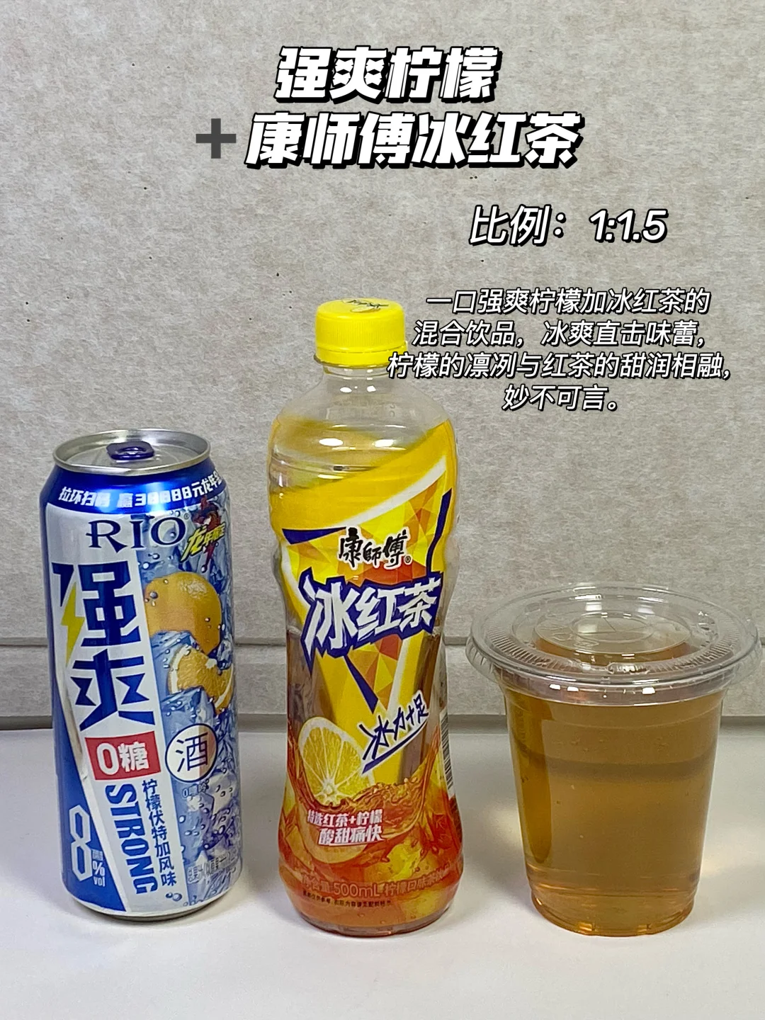 3⃣ 强爽0糖黄金柠檬+康师傅冰红茶=1:1.5
