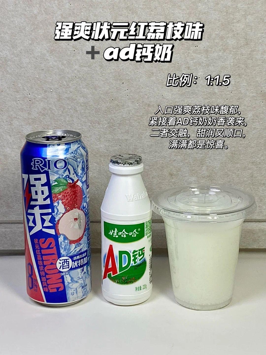 8⃣ 强爽状元红荔枝+ad钙奶=1:1.5