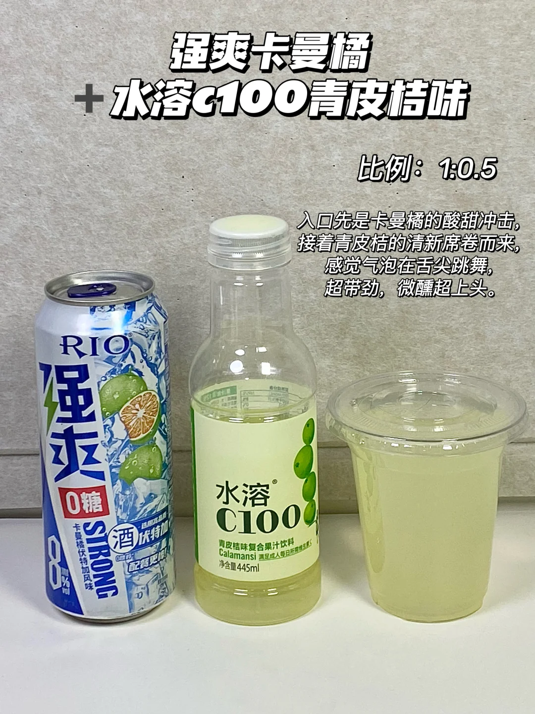 2⃣ 强爽0糖卡曼橘+水溶c青皮桔=1:0.5