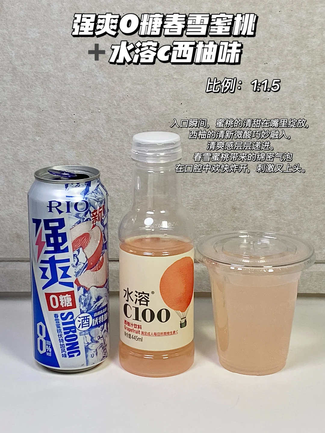 1⃣ 强爽0糖春雪蜜桃+水溶c西柚味=1:1.5