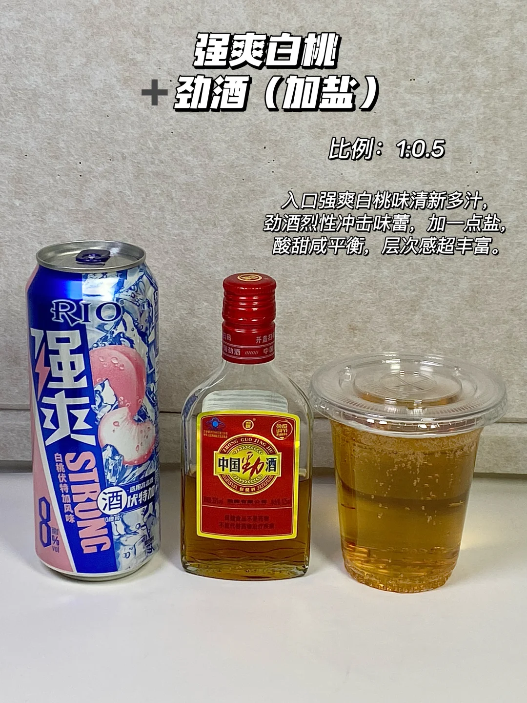 4⃣ 强爽白桃+劲酒(加盐)=1:0.5