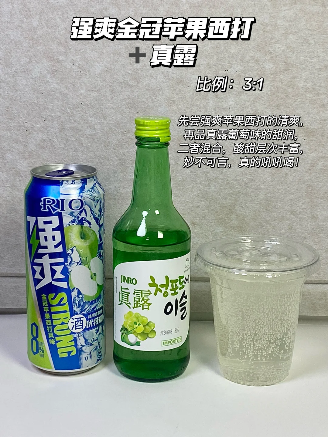 9⃣ 强爽金冠苹果西打+真露=3:1