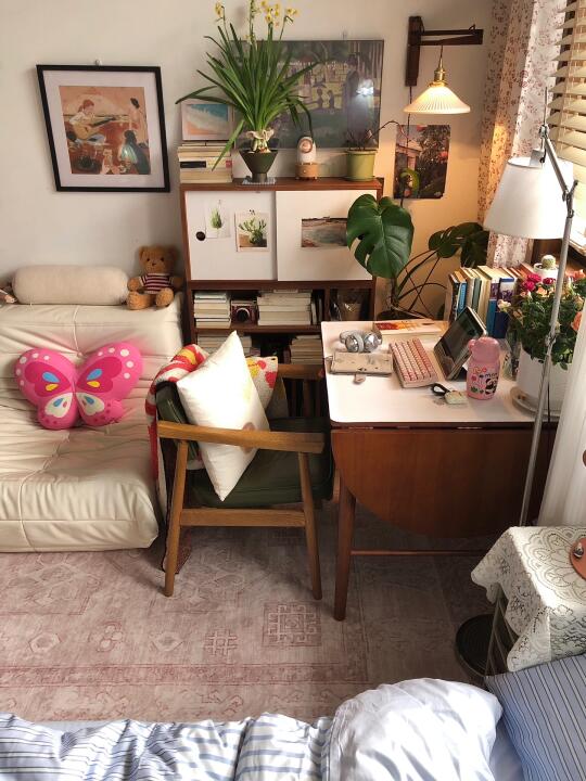 在我的12平卧室独居快一年啦 布置了一个可以提供情绪价值的房间 还有一只可爱的狗子 真的很幸福啊✨