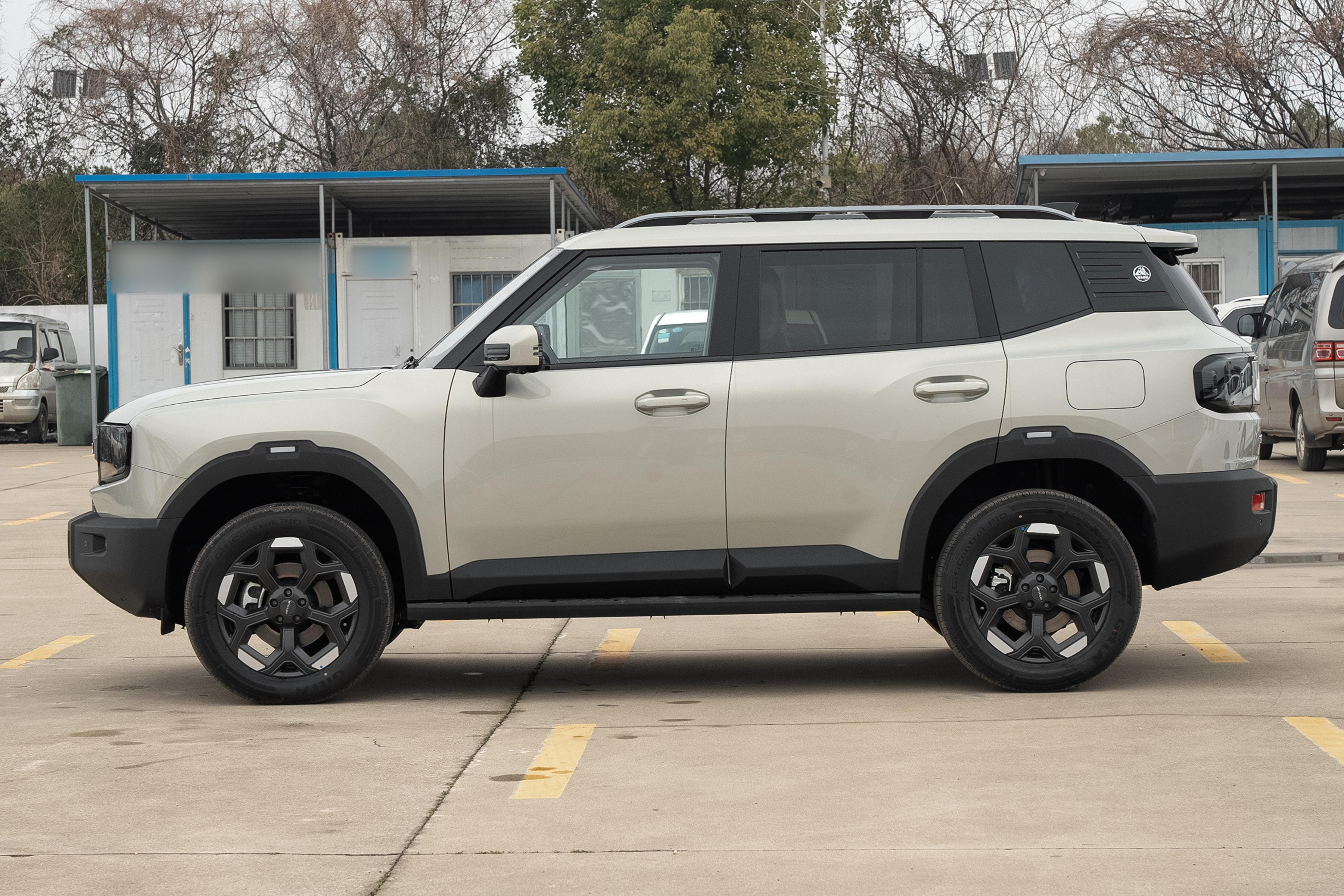 车身侧面,一眼看去整车的线条设计平直且流畅。同时车身侧面的曲面性设计表现不错,并且在车尾部分还设计了棱角腰线以及悬浮式的车顶配合行李架让车身侧面更显层次感。而在车身侧面底部还加入了贯穿式黑色包围进而保护车身和提升越野氛围。而车尾部分也设计与前脸相呼应的四叶草尾灯组来提升车尾的辨识度,同时车尾顶部还加入了高位刹车灯和宽厚的扰流板,越野元素设计很多,整个视觉效果上很有越野氛围。