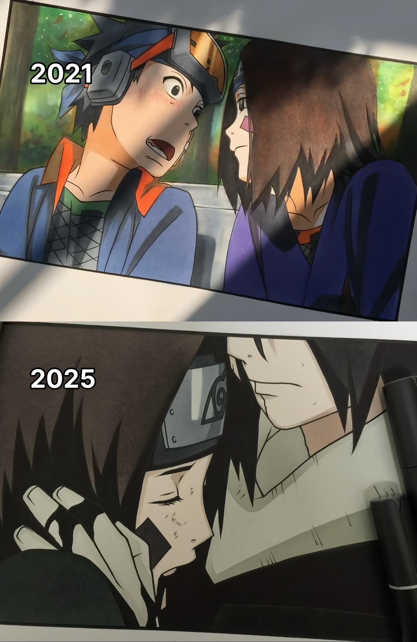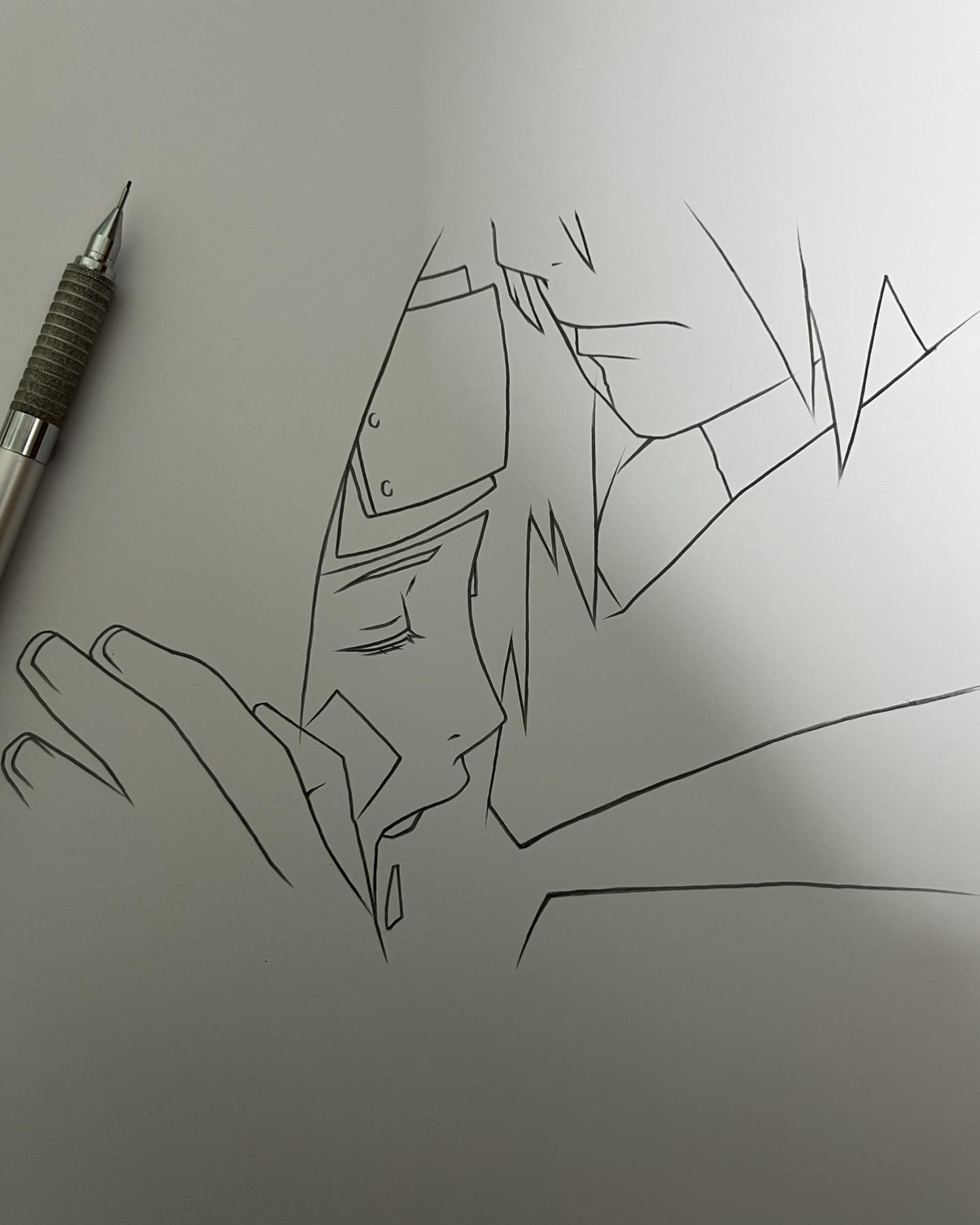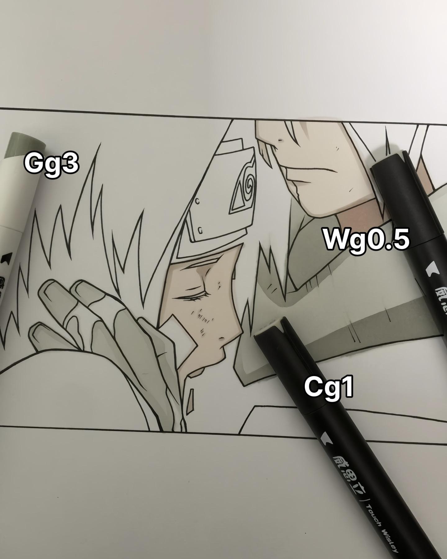 我故意拖延了散场时间 却忘记了结局不会有任何改变. 带土和琳 手绘 绘画过程图 马克笔:威思立二代