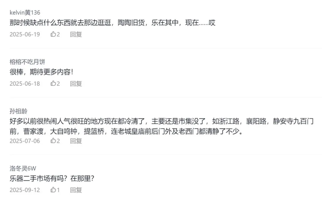 这些市场的消失,不仅仅是一个市场的搬迁,而是一段段城市记忆的消逝,是很多人再也回不来的童年。小红书上,满屏的“舍不得”“我的童年没了”“最后再去逛一次”,字字句句都浸着留恋与惋惜。我摘录一些放在这里: