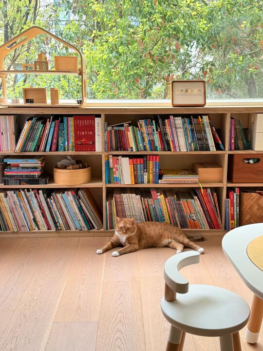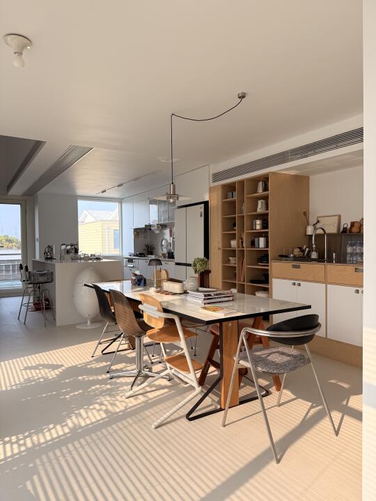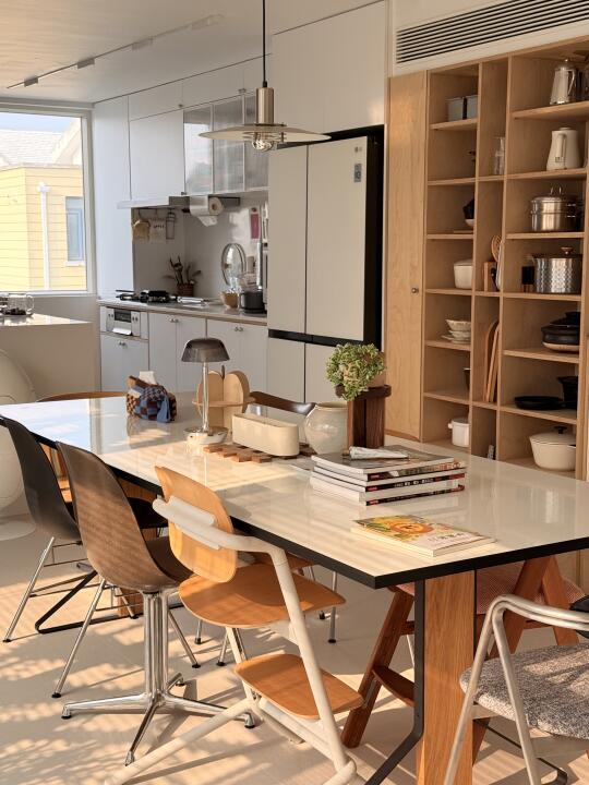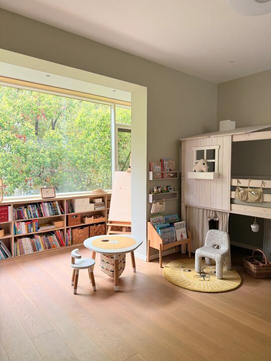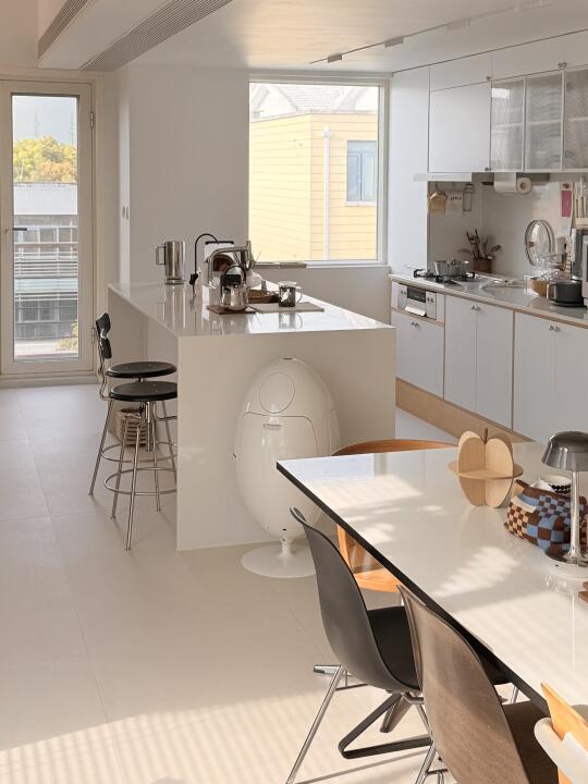进入春天,下午的餐桌就会在西晒下变得金光闪闪 厨房小窗看出去,远处的杉树也披上了毛茸茸的绿色