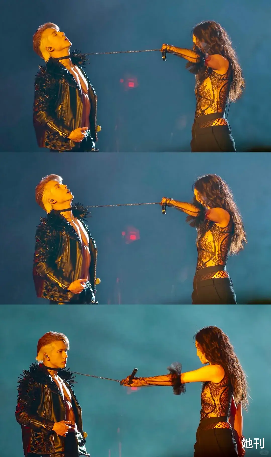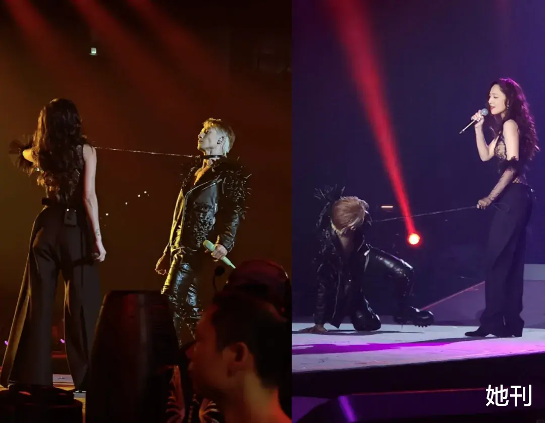 此外,在与郑希怡合作的《相对湿度》表演中,二人上演了一段“女王训狗”式的限制级互动,将现场氛围推向高潮。