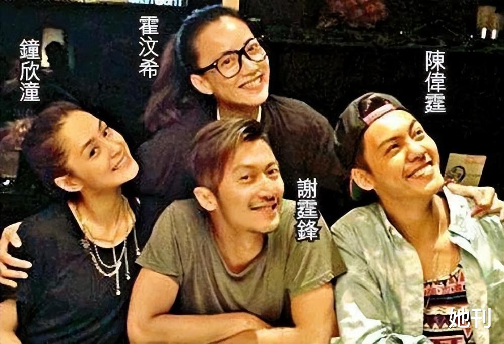 当霍汶希因情伤而消沉时,谢霆锋竟主动赶到她家,装起一副“老江湖”的姿态安慰她:“仔「死」仔还在”(这个男人不行了,还会有更好的男人出现)。