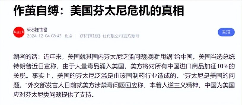 芬太尼是一种强效镇痛药,属于阿片类,成瘾性极大,是海洛因的50倍!它的泛滥完全是美国自己的问题,这锅中国可背不起。