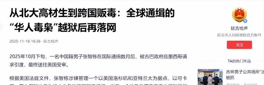 美国为什么非要他?估计跟芬太尼有关。今年9月美墨联合声明里,两国说要共同遏制芬太尼及其他非法毒品贩运。张智栋被捕后,欧美媒体大多称他为"芬太尼毒枭",所以对美国来说,这小子甚至有了政治意义。