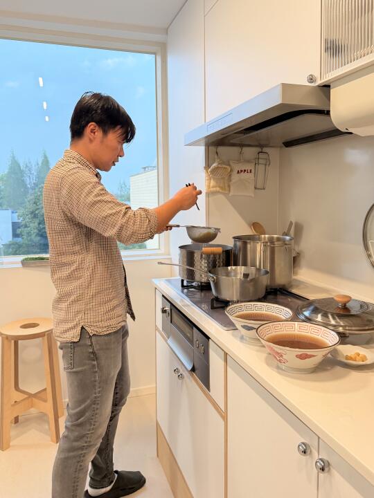 这几天爱上了鸡胸肉拉面🍜 一家人围在厨房里,边聊天边等待开饭 我也不着急催着小朋友做作业了