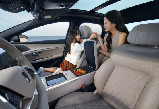 新车着眼于家庭出行的真实场景,深度整合的智能生态尤为亮眼,与好孩子智能儿童安全座椅、宠物安全座、倍轻松智能眼罩及影石Insta360运动相机等深度联动,为车主及家人的舒适与安全保驾护航。