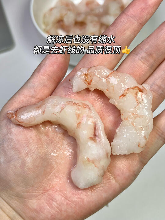 关于买大虾 我可是做足攻略了 网下买的和线上叫的品质都不太好,要么要剥壳要么有腥味要么不新鲜!上看大家都推荐世纪联华外贸优品虾仁和鱿鱼,买了回来试试,虾仁颗粒大又饱满,解冻后也不会缩水!!品质真的很好!