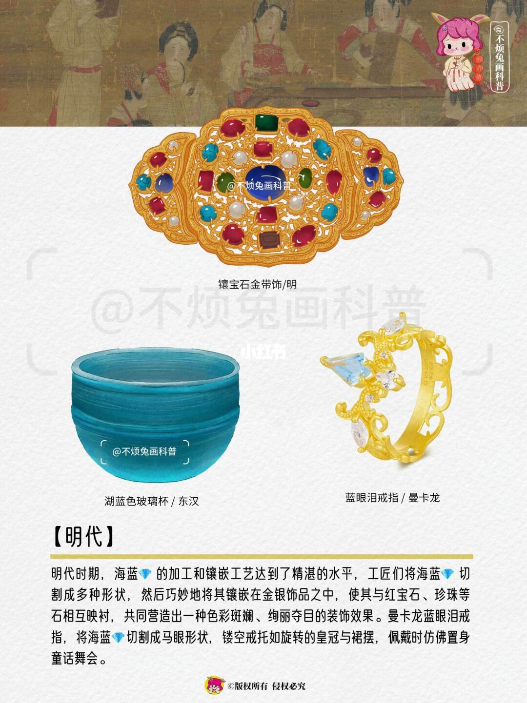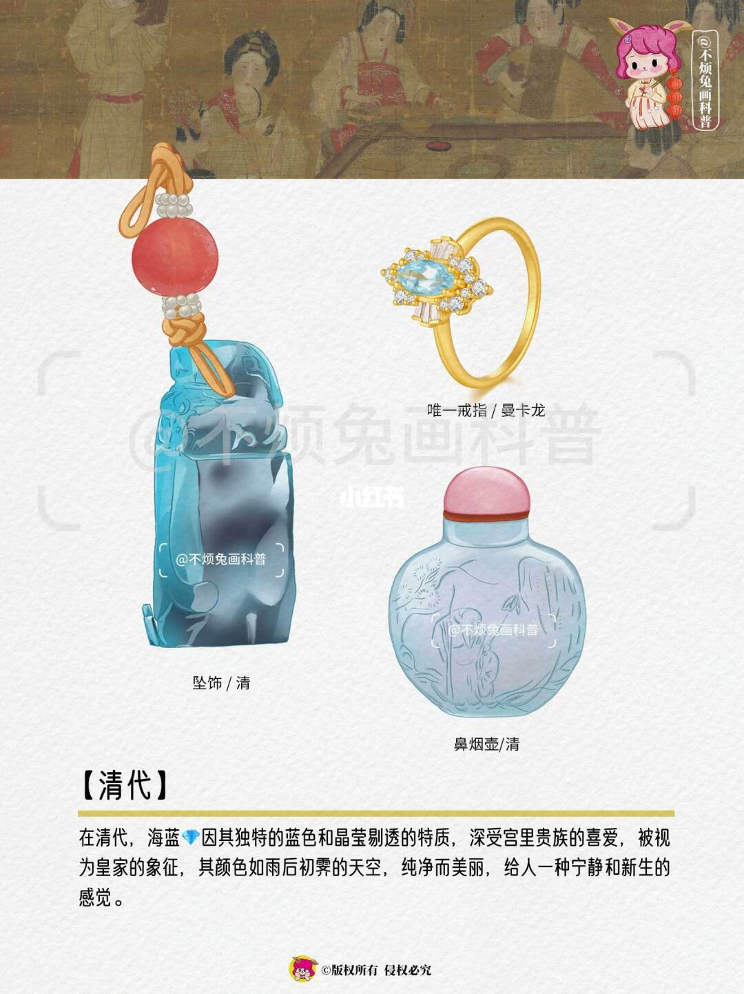 在清代,海蓝💎因其独特的蓝色和晶莹剔透的特质,深受宫里贵族的喜爱,被视为皇家的象征,其颜色如雨后初霁的天空,纯净而美丽,给人一种宁静和新生的感觉。