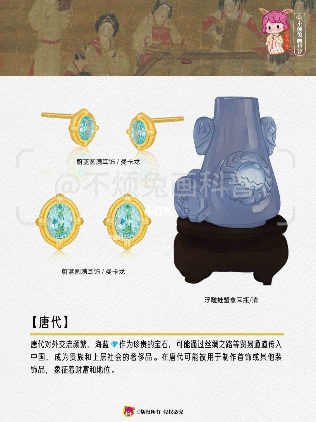 唐代对外交流频繁,海蓝💎作为珍贵的宝石,可能通过丝绸之路等贸易通道传入中国,成为贵族和上层社会的奢侈品。在唐代可能被用于制作首饰或其他装饰品,象征着财富和地位。